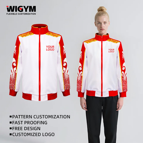 Chaqueta de calentamiento de animación y baile de diseño personalizado para mujer Chaqueta de animación de sublimación de poliéster ecológica